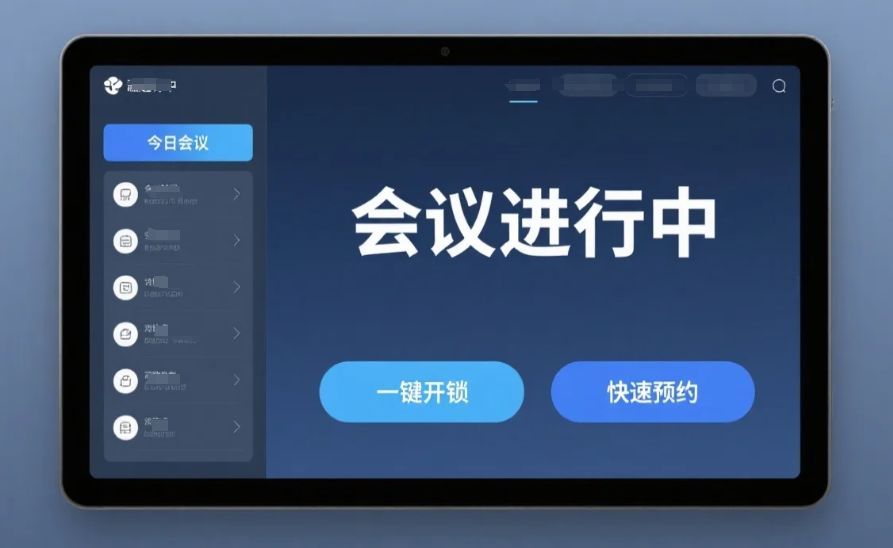 为进一步提升会议室管理的智能化水平,该企业引入了安卓10.1寸的电子班牌。不仅提高了会议室的科技感,还具备多种实用功能: