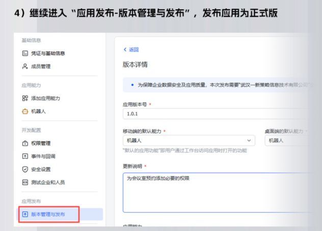 至此,飞书集成启辰智慧预约及智能门锁的应用创建就完成了,下面要进行会议室和智能门锁的绑定。