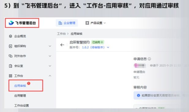 6、进入飞书管理后台(不是开发者后台),审核应用