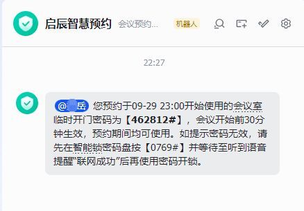 10、这样就完成了全部绑定工作,将之前的预约记录审核通过,就可以在飞书中收到开门密码了,查询飞书日历中的预约记录也可以查询到密码。