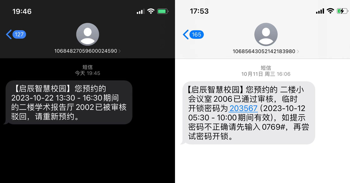 1、会议预约成功后,自动分配临时开锁密码并发送短信到用户手机。
